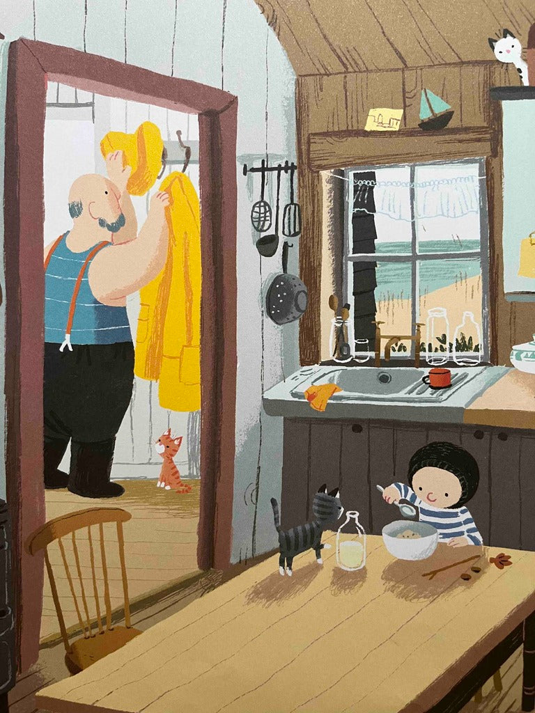 Every day, in a house by the sea, a little boy watches his father leave for a long day's work. One night, a great storm washes a small whale onto the beach. The boy discovers the whale is a good listener. The father discovers the boy is lonely. Together, they return the whale to the sea. And from that day on, the boy learns that the father can be a good listener too, in Benji Davies's heartwarming tale, The Storm Whale.