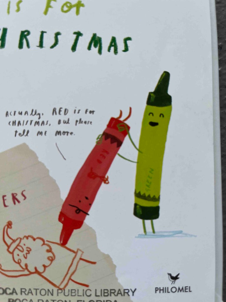 When Green Crayon claims that green is the only color for Christmas, other crayons let him know that there would be no Christmas without them either. No candy canes or Santa without Red, no snow without White, no bells or stars without Silver, and no cookies or reindeer without Tan! The crayons agree that they all need to come together to make Christmas special.