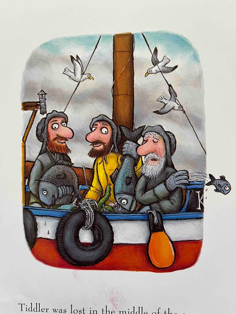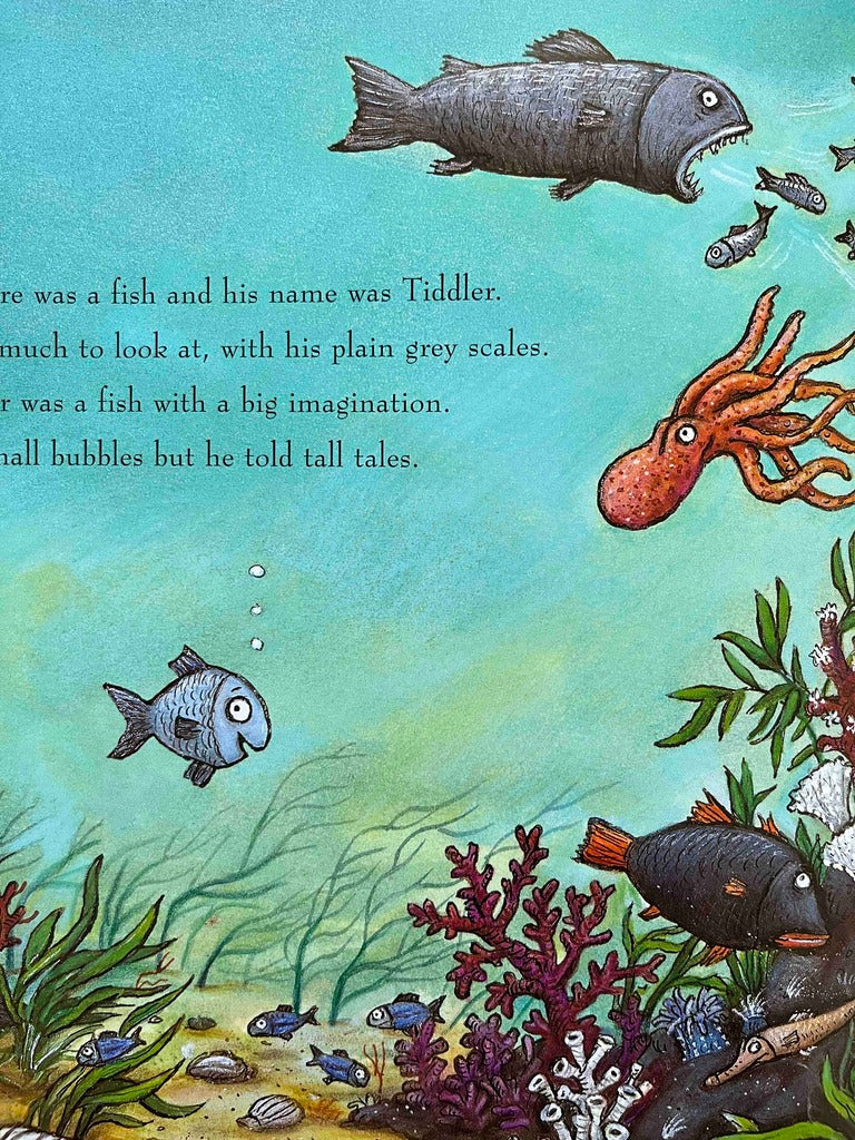 Tiddler is late to school every day, and he always has an elaborate excuse for his teacher. One day, as Tiddler is thinking up his next story, a net sweeps him up and hauls him far away from his school. How will Tiddler find his way home? All he has to do is follow the trail of his biggest, fishiest story yet!