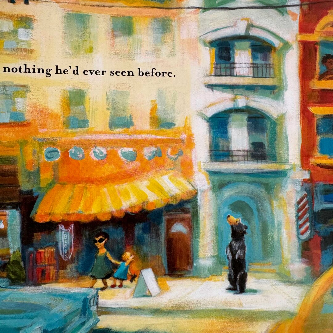 The bear’s journey from forest to city and back home again is full of happy accidents, funny encounters, and sensory delights. The story is so engrossing, it’s not until the very end that we begin to suspect this is a TALL tale.