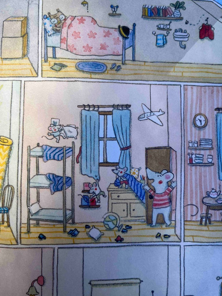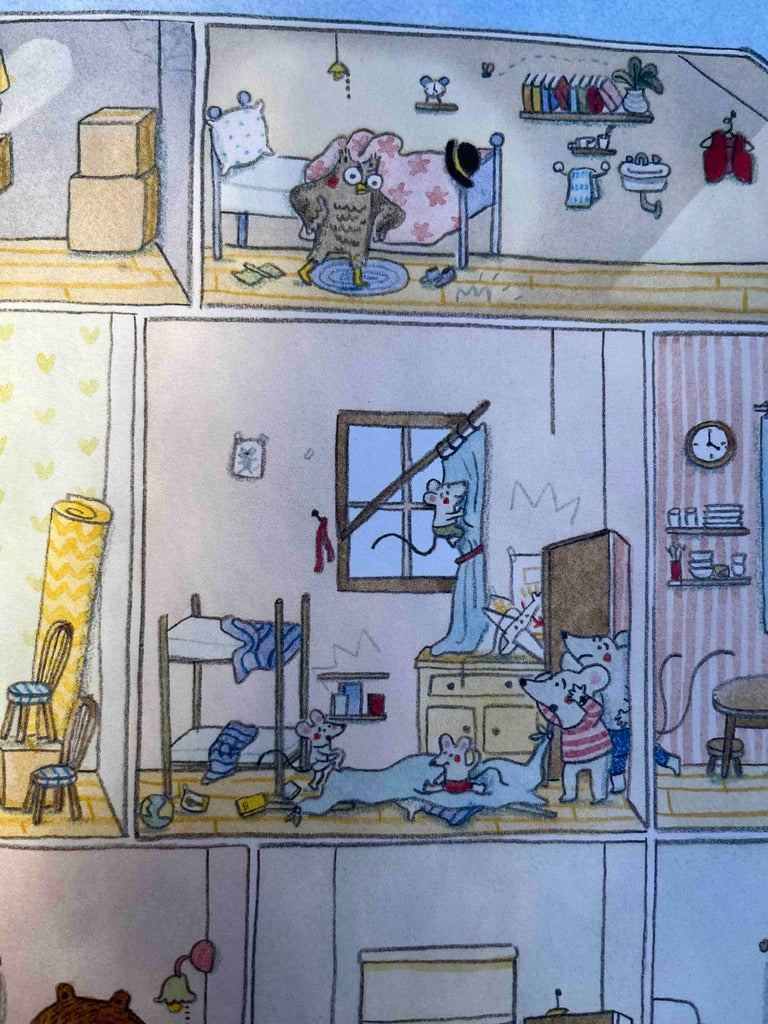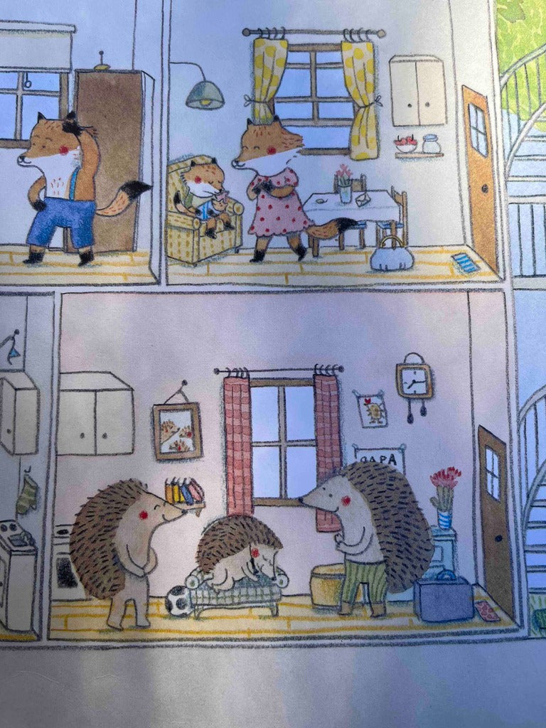It’s a special day at 3 Maple Street. It’s Little Rabbit’s birthday! His mother makes him his favorite breakfast. His sister has drawn him a picture. And, best of all, he’s having a birthday party! His friends are invited, his father is decorating, and his mother is baking a cake. But that’s not the only thing going on at 3 Maple Street today. The Cat family is moving in upstairs … the Fox family is having a new baby … Mr. Owl is trying to sleep … there’s so much happening inside (and outside) this lively building, it’s hard to keep track!